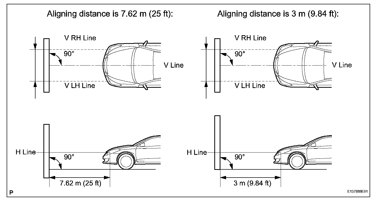 - Create a 7.62 m (25 ft) distance between the vehicle (headlight bulb center) and the wall.