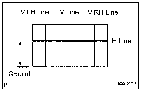 Draw a horizontal line across the screen so that it passes through the center marks. The H line should be at the same height as the headlight bulb center marks of the low-beam headlights.
