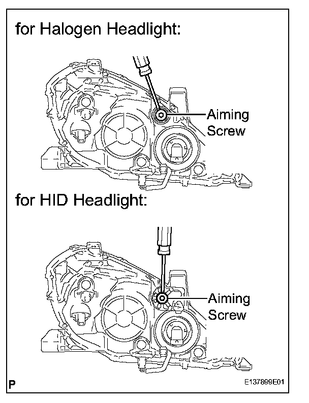 - The headlight aim moves up when turning the aiming screw clockwise, and moves down when turning the aiming screw counterclockwise.