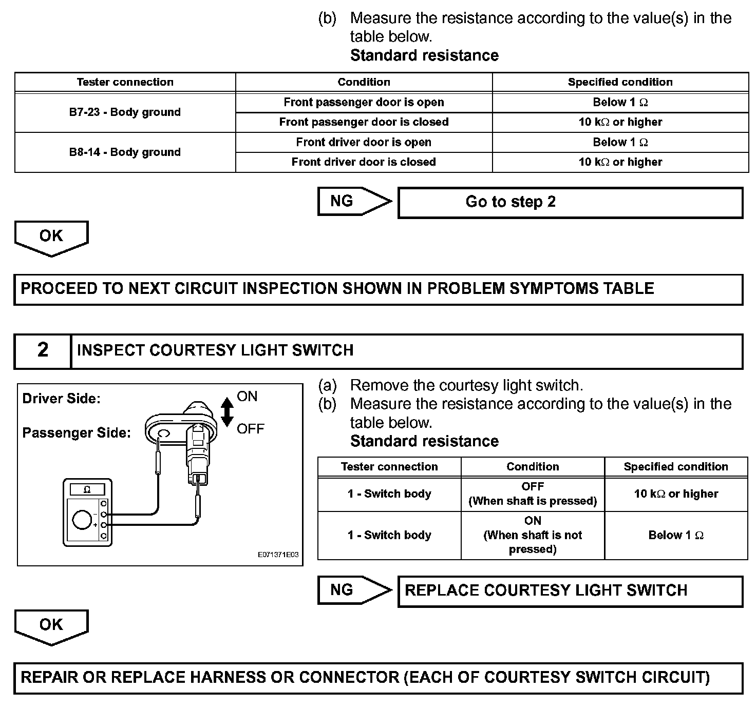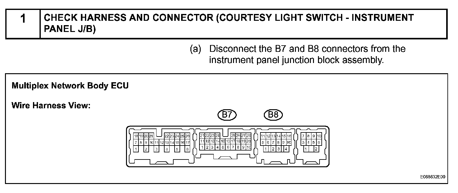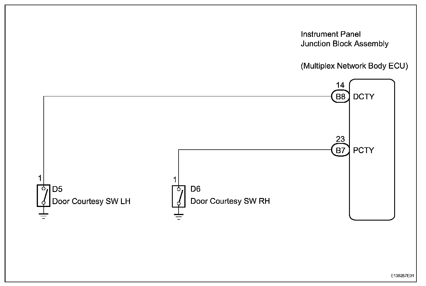 The multiplex network body ECU detects the condition of the door courtesy switch assembly.
