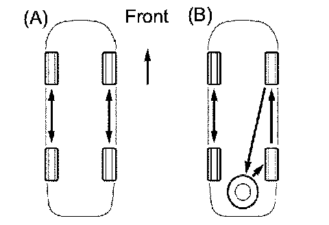 (a) Rotate the tires as shown in illustration (A). If the vehicle is equipped with a grand spare tire, rotate the tires as shown in illustration (B).