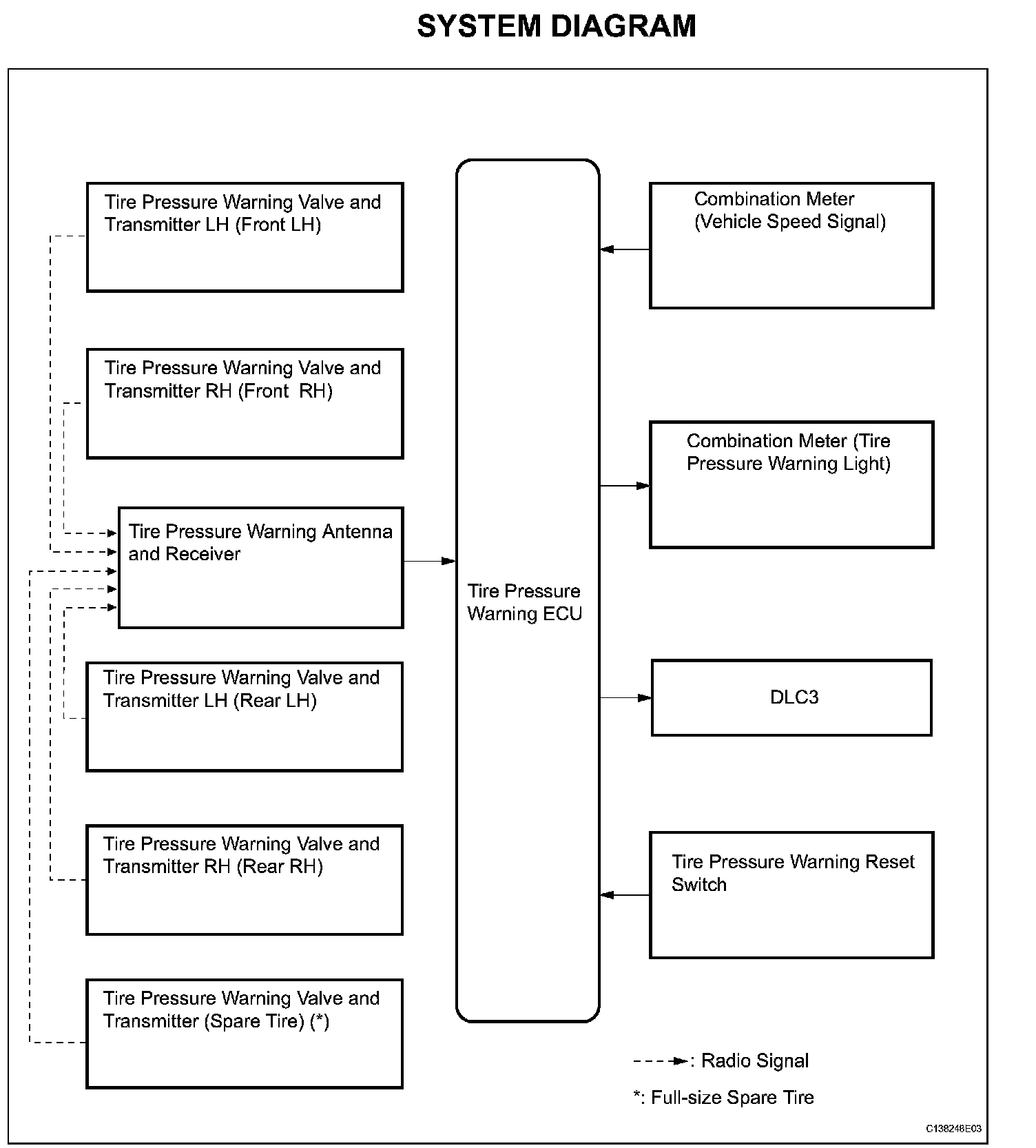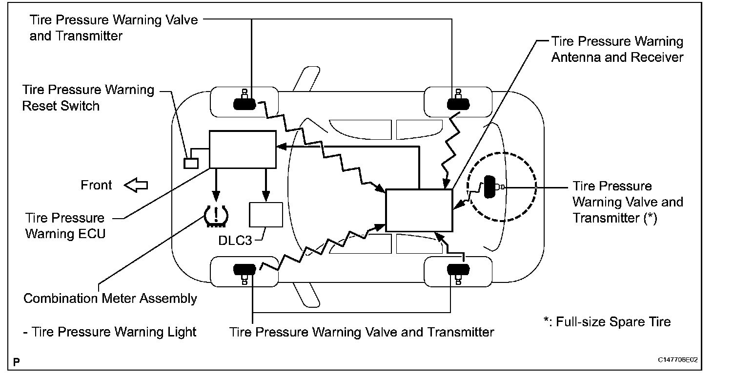 SYSTEM DIAGRAMHINT: The tire pressure warning valve and transmitter sends information on the temperature inside the tire, the ID, and the tire pressure.