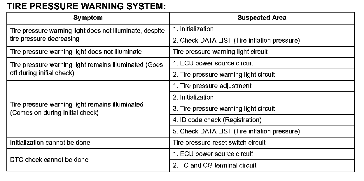 - Use the table to help determine the cause of the problem symptom. The potential causes of the symptoms are listed in order of probability in the "Suspected Area" column of the table. Check each symptom by checking the suspected areas in the order they are listed. Replace parts as necessary.