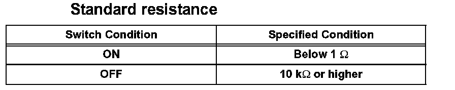If the result is not as specified, replace the tire pressure warning reset switch.