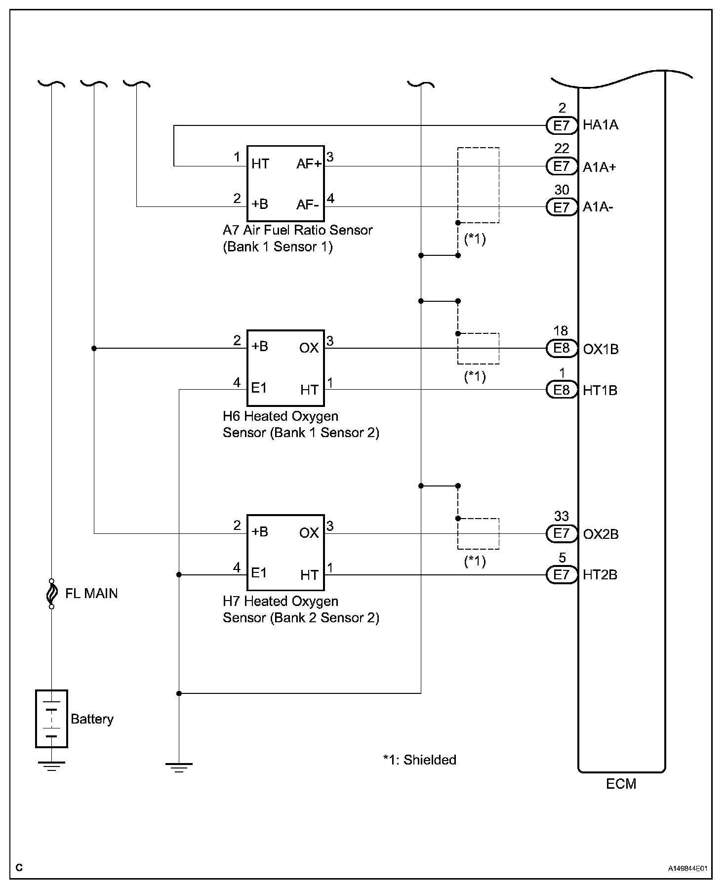 The emission control system is determined by the ECM based on signals from various sensors.