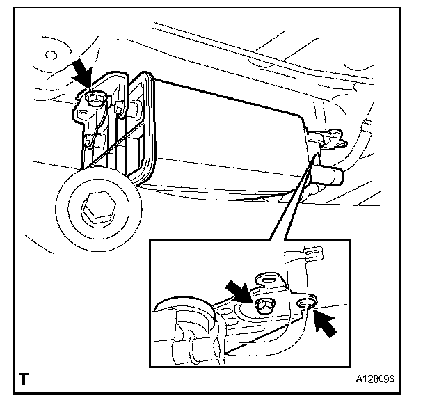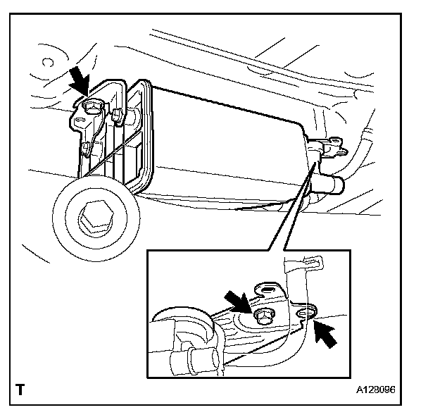 a. Install the 2 bolts, clip and charcoal canister.
