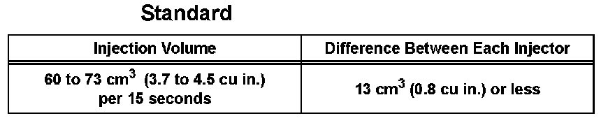 NOTE: Always turn on and off the voltage on the battery side, not on the fuel pump side. If the result is not as specified, replace the injector.