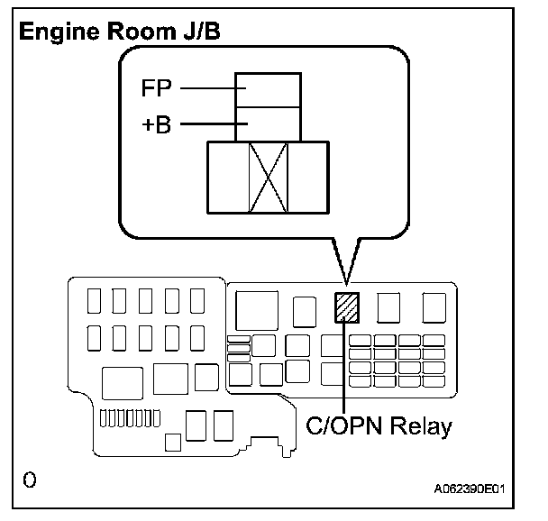 1. Remove the C/OPN relay from the engine room J/B.
