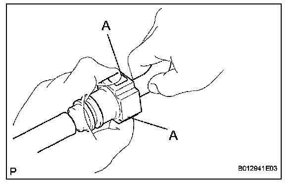 d. Disconnect the fuel tube connector from the fuel pipe by pinching part A with your fingers, as shown in the illustration.