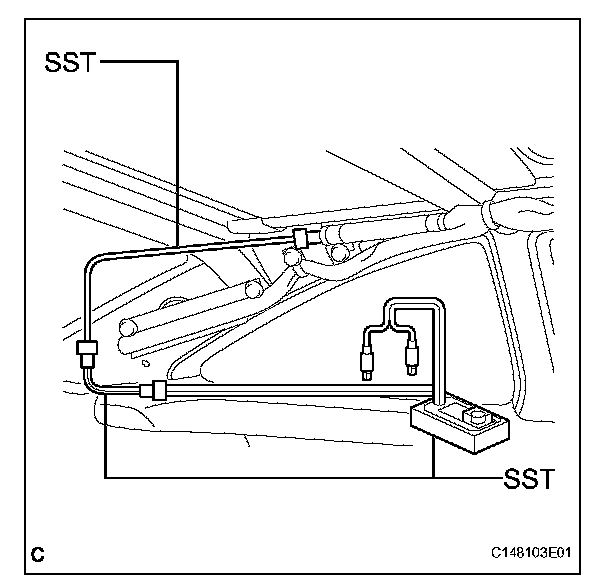 NOTE: Take care not to damage the SST wire harness.