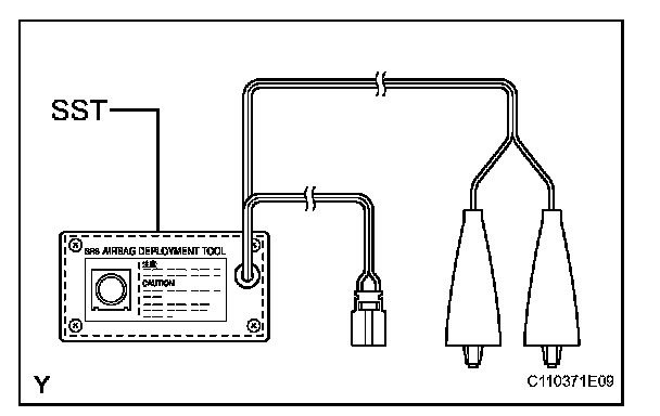 - When deploying the airbag, always use the specified SST (SRS Airbag Deployment Tool). Perform the operation in a place away from electrical noise.