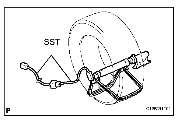 NOTE: Do not place the SST connector under the tire because it could be damaged.