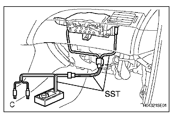 d. Install the SST. After connecting the SST below to each other, connect them to the front passenger airbag assembly.