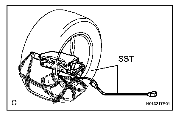 NOTE: Do not place the SST connector under the tire because it could be damaged.