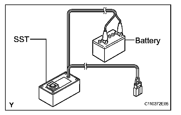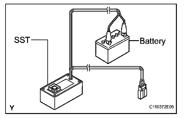 5. Connect the red clip of the SST to the battery positive (+) terminal and the black clip of the SST to the negative (-) terminal.