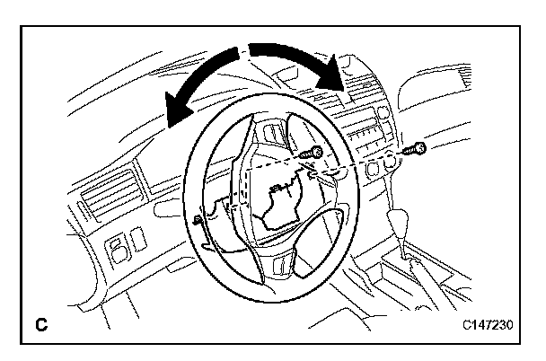 1. While turning the steering wheel assembly to the right and left, remove the 2 screws and the lower steering column cover.
