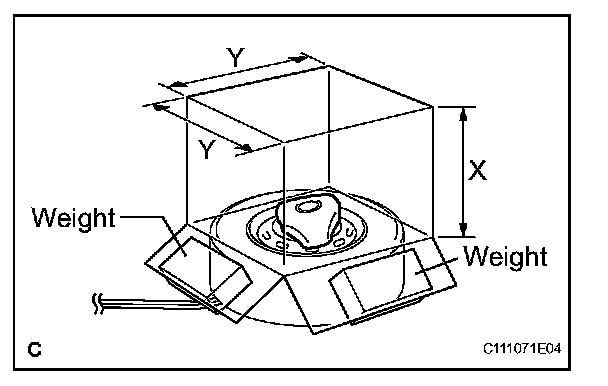 - When the dimension Y of the cardboard box exceeds the diameter of the disc wheel with tire which the steering pad is tied to, X should be the following size. X = 460 mm (18.11 in.) + width of tire