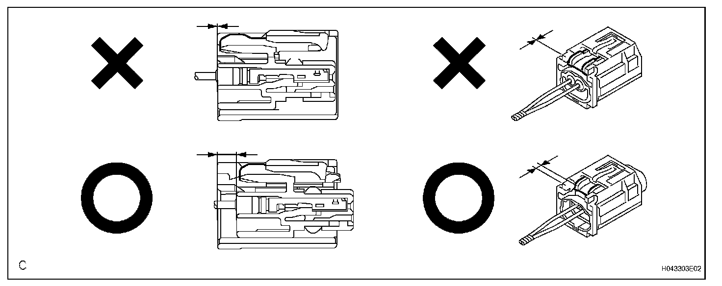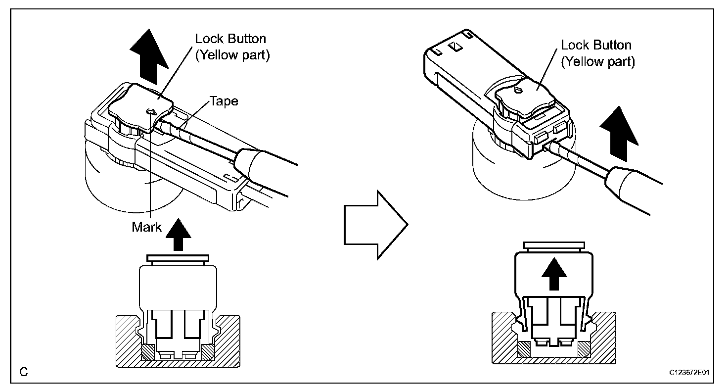 c. After disconnecting the connector, check that the position of the housing lock (white part) is as shown in the illustration.