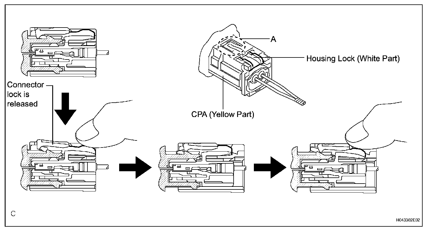 HINT: Do not push down the A part shown in the illustration when disconnecting.