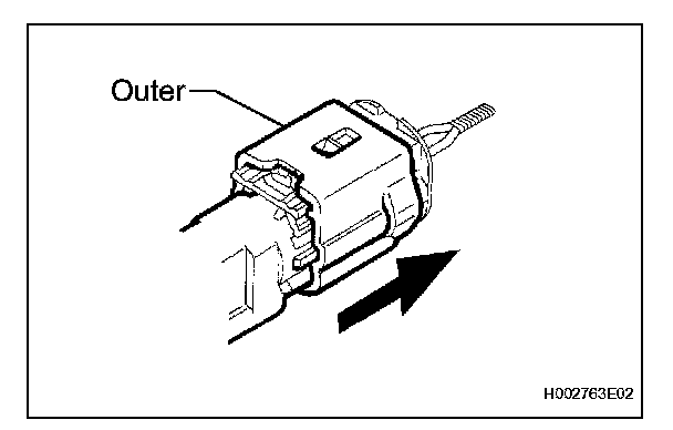 a. While holding both the sides of the outer connector locking sleeve, slide the outer in the direction shown by the arrow.