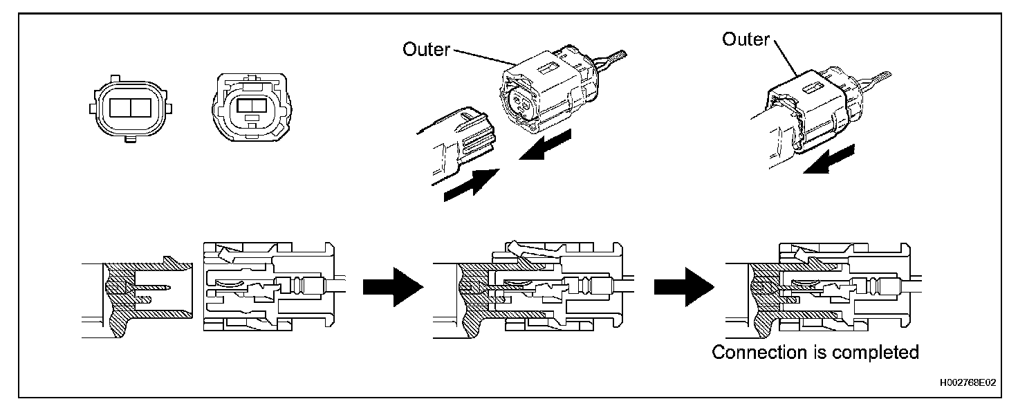 a. Connect the connector as shown in the illustration. (When locking, make sure that the outer returns to its original position and a click sound can be heard.)