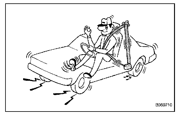 b. Drive the vehicle at 16 km/h (10 mph) and slam on the brakes. Check that the belt locks and cannot be extended at this time.