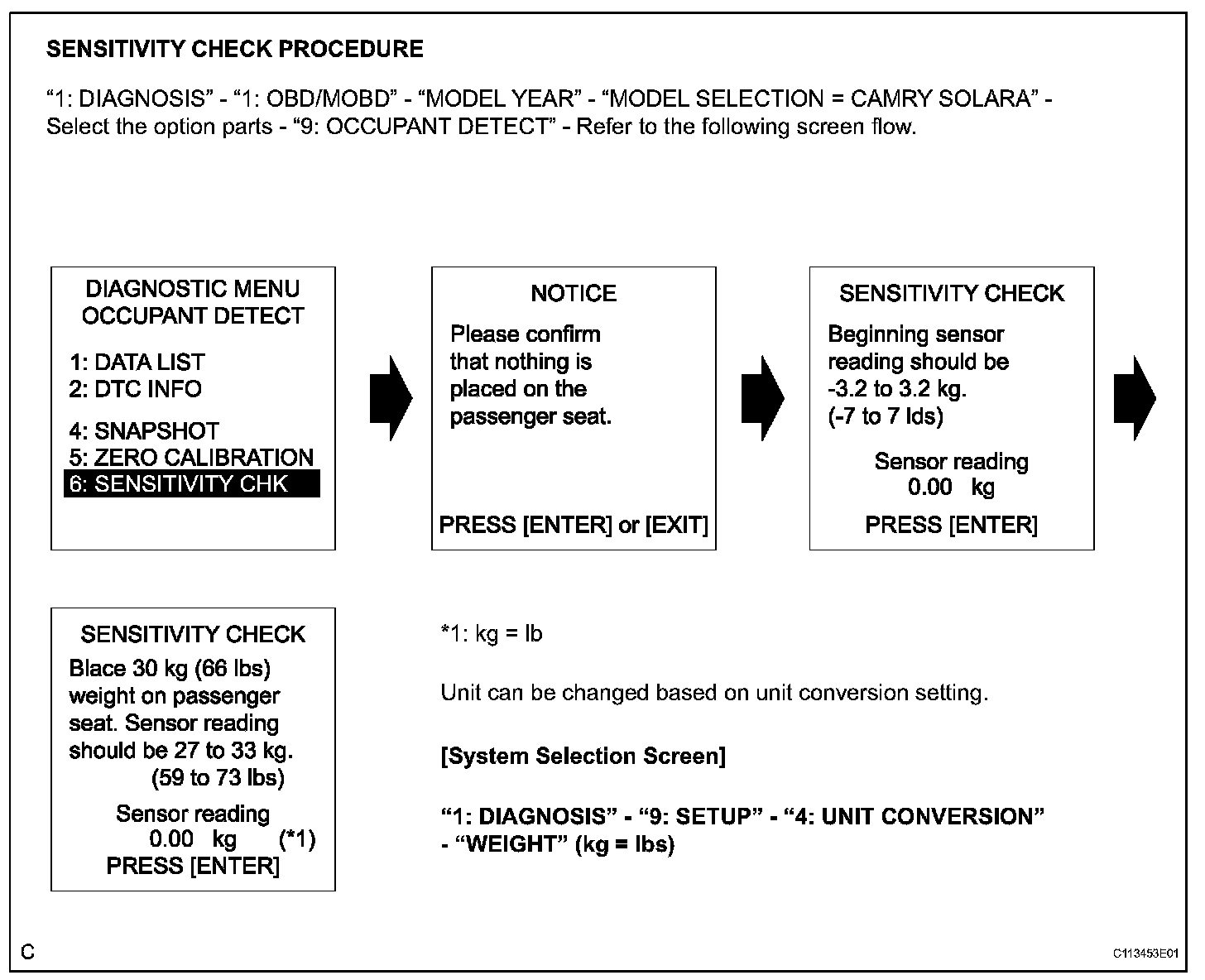 6. Confirm that the beginning sensor reading within standard value.