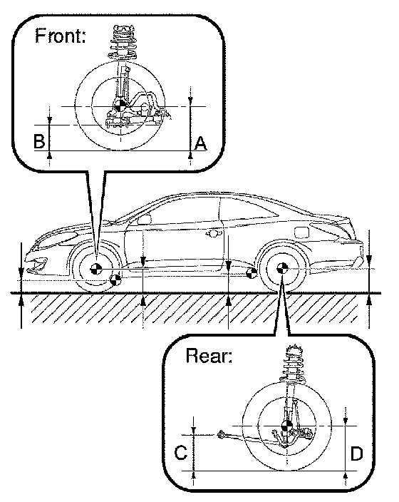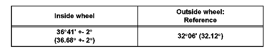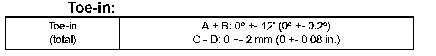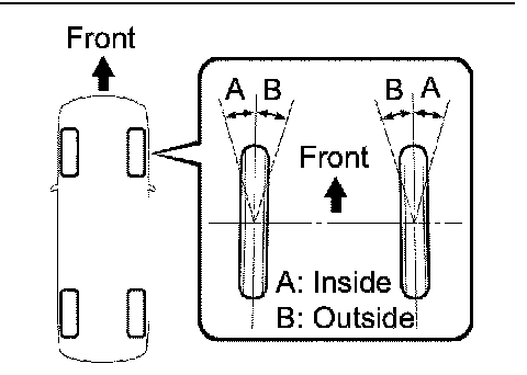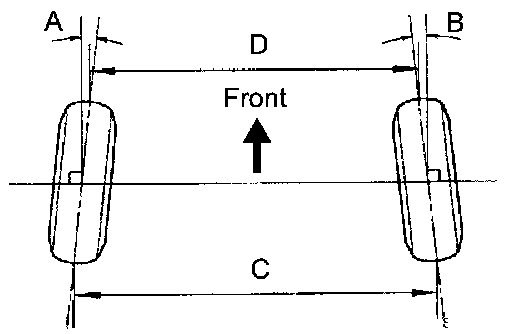 - If toe-in is not within the specified range, inspect the suspension parts and replace them if necessary.