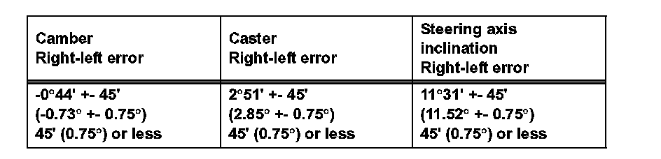 Camber, Caster and Steering Axis Inclination - 2AZ-FE SPORT: