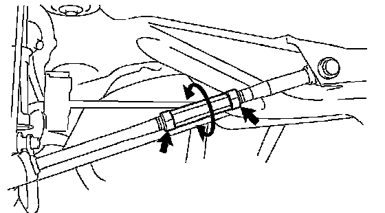 ^ One turn of each adjusting tube will adjust toe-in by approximately 1.2° (1°12'), 10.8 mm (0.425 inch).