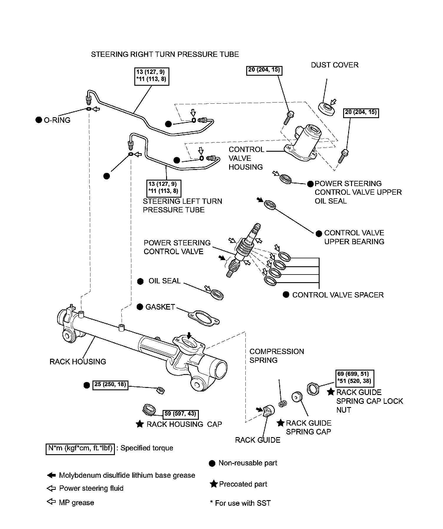 (b) Using SST, torque the rack guide spring cap.
