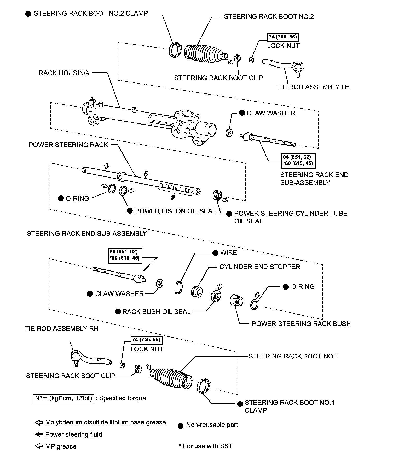 (b) Using SST, install the 2 steering rack end subassemblies.