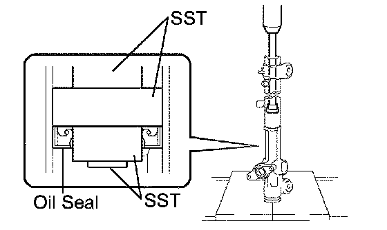 (b) Using SST and a press, install the rack bush oil seal to the rack bush.