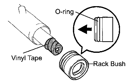 HINT: Wrap vinyl tape around the end of the steering rack in order to prevent damaging the rack bush oil seal.