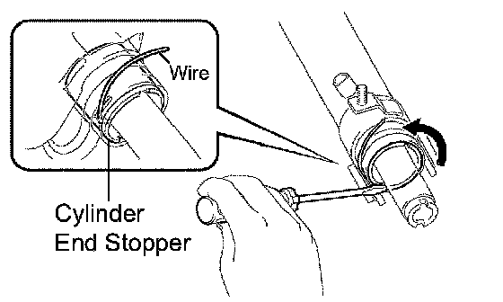 (b) Install a new wire into the cylinder end stopper.