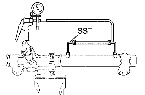 (b) Using SST, connect the return tube assembly to the power steering gear assembly.