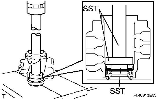 (d) Using SST and press, install the control valve upper bearing.