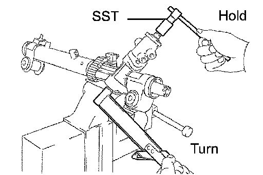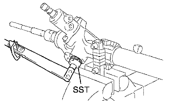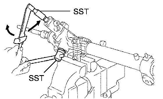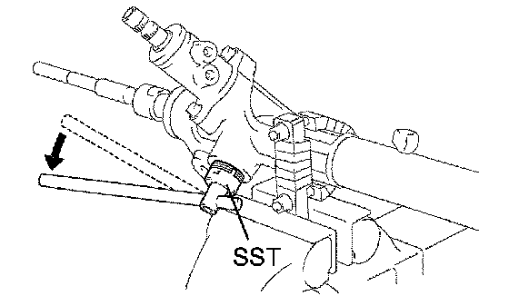 HINT: Using SST, hold the rack and install the steering rack end subassembly.