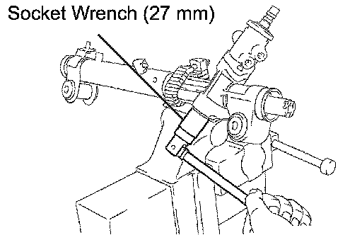 (m) Using a socket wrench (27 mm), install the rack housing cap.