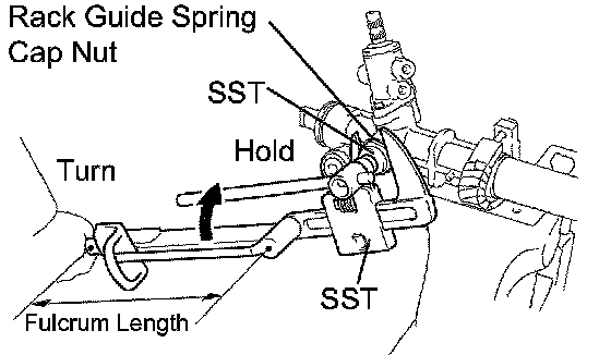 (i) Using SST, hold the rack guide spring cap and using another SST, torque the spring cap lock nut.