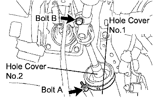 (e) Install the clamp to the hole cover No.1 and tighten bolt A.