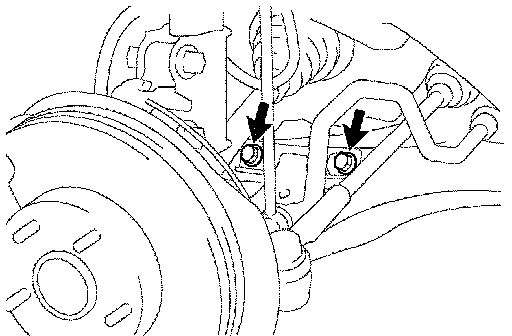 (a) Remove the 2 bolts on the front side of the front suspension arm subassembly lower No. 1 LH.