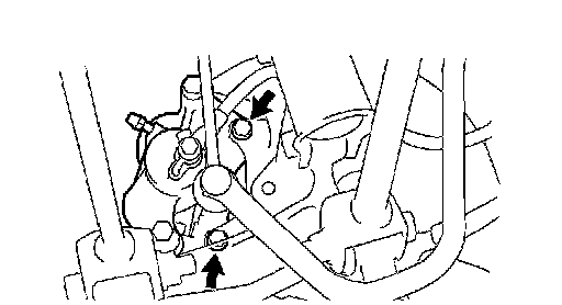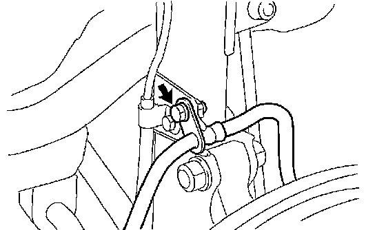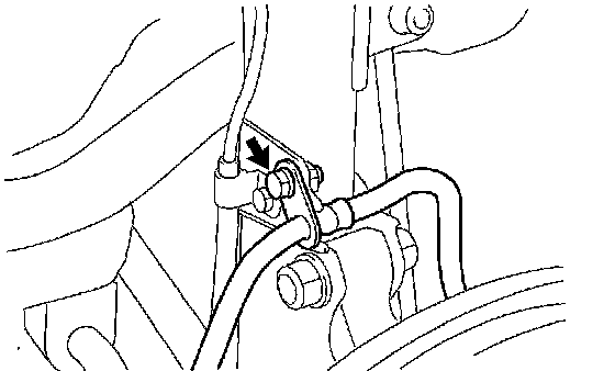NOTICE: Use a string or similar device to keep the brake caliper from hanging down by the flexible hose.