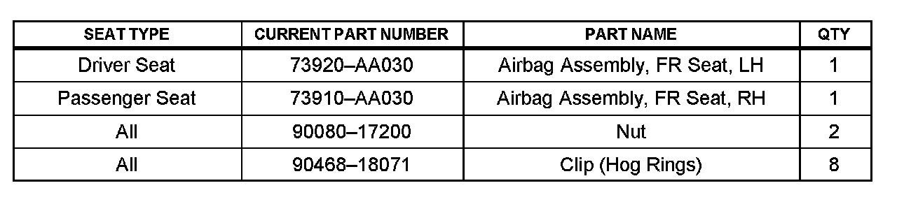 This repair is covered under the Toyota Restraint Systems Warranty. This warranty is in effect for 60 months or 60,000 miles, whichever occurs first, from the vehicle's in-service date.