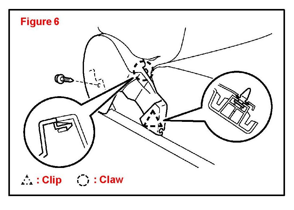 D. Using a plastic pry tool disengage the claws and remove the cushion shield together with the cushion shield inner No.1.