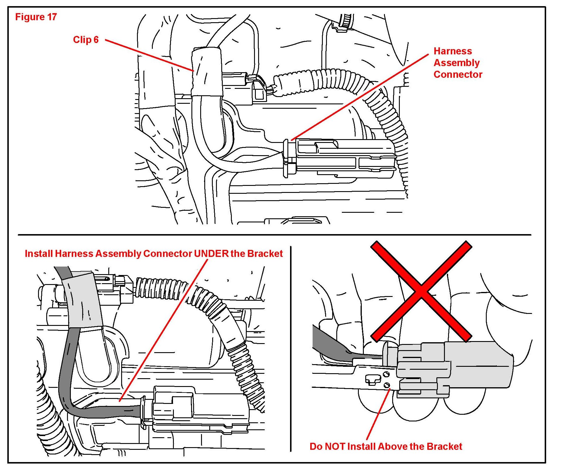 B. Remove the 2 clips holding the airbag wire harness.