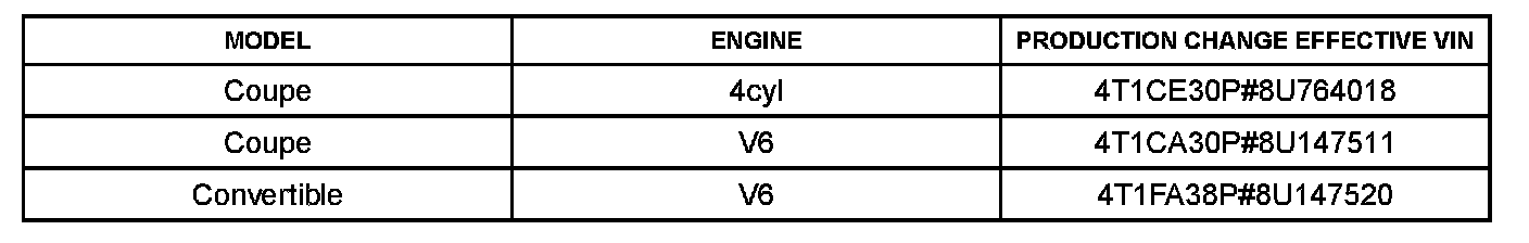 This TSB applies to vehicles produced BEFORE the Production Change Effective VINs shown.