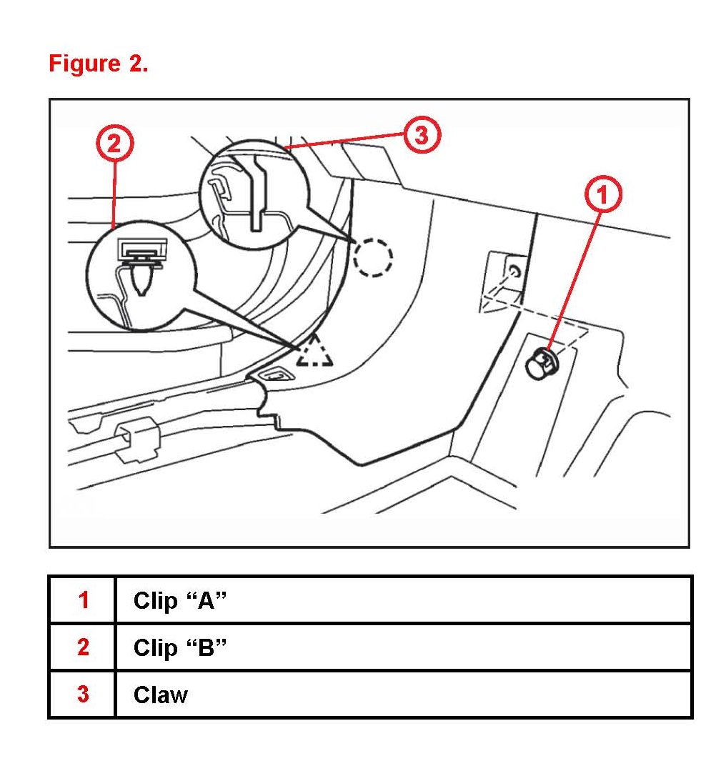 B. Disengage the claw and clip labeled B and remove the side trim.