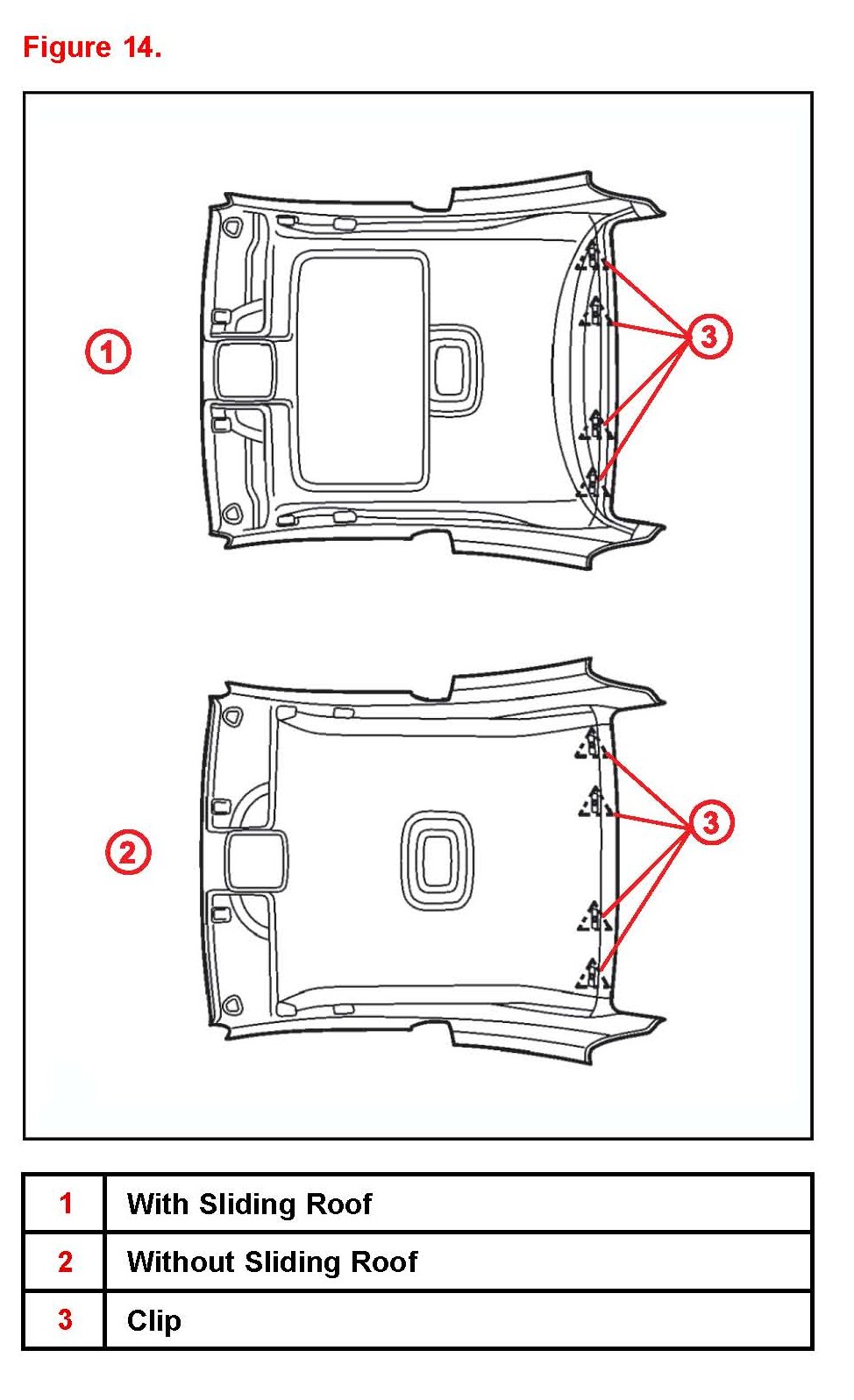 B. Install the roof headlining with the 4 clips.