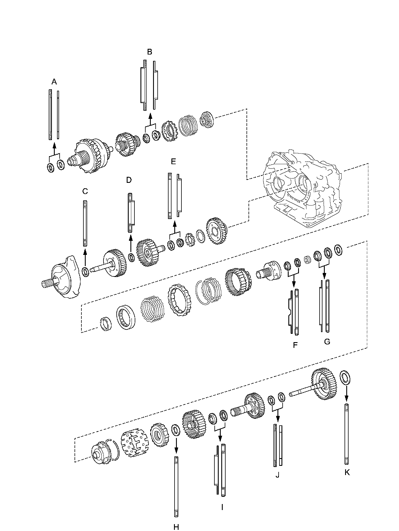 ^ After assembling, confirm that there is no clearance between the second brake cylinder and the fitting surface of the cylinder in the transaxle case.